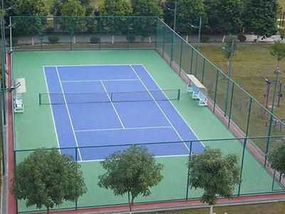 網(wǎng)球場圍網(wǎng)表面處理:圍網(wǎng)采用PE/PVC包塑絲,立柱、邊框采用噴塑、浸塑處理。